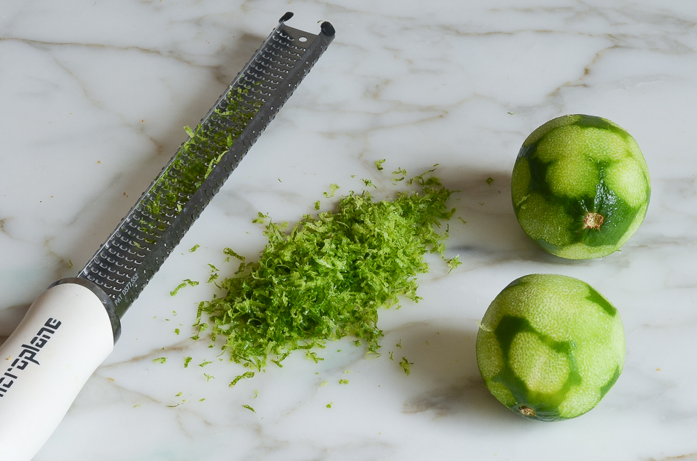 2. Zest and juice the limes. Whisk the lime zest and egg yolks in a medium bowl for 2 minutes. Whisk in the sweetened condensed milk, then the lime juice. Set aside at room temperature to thicken while you prepare the crust.